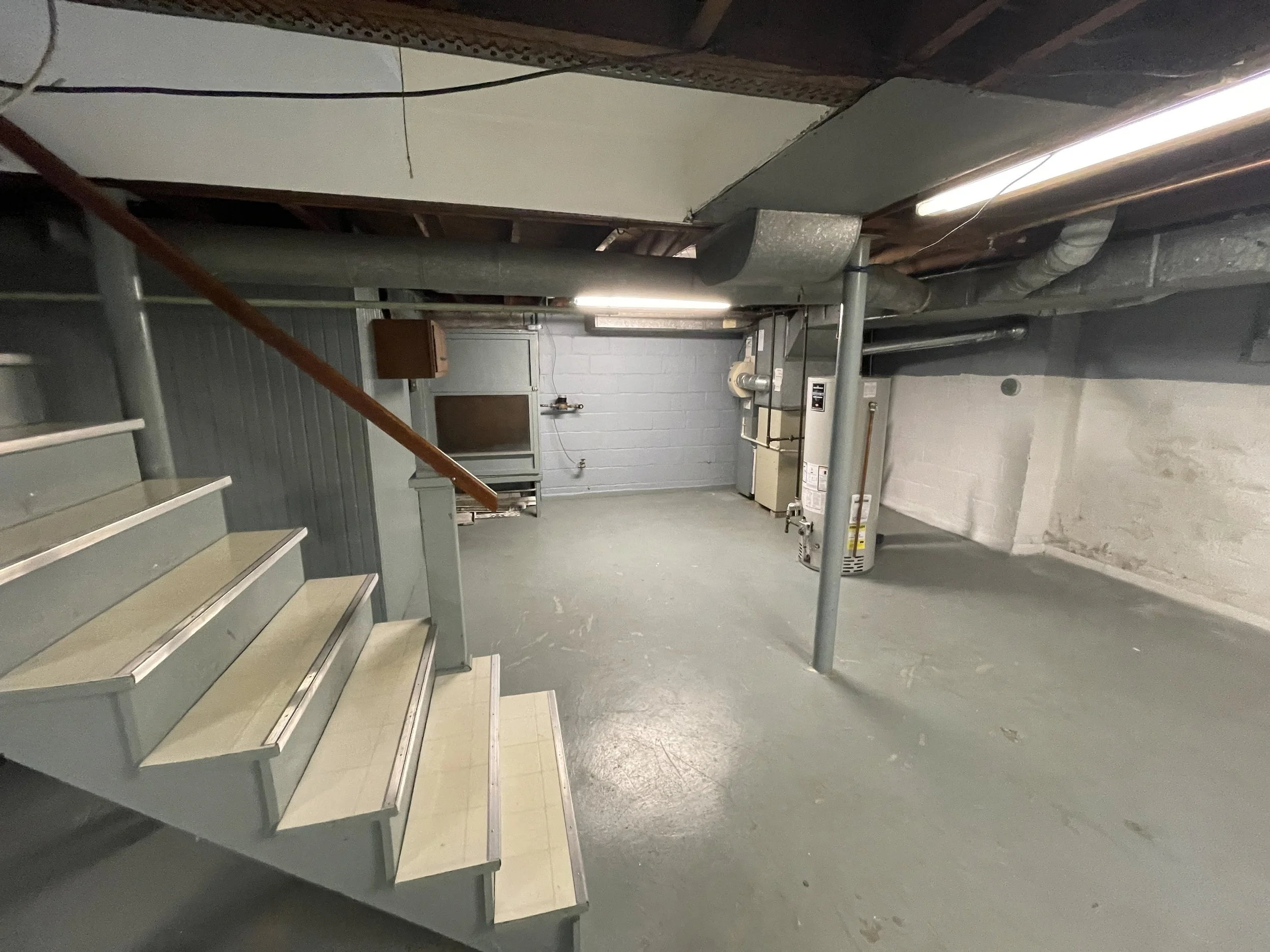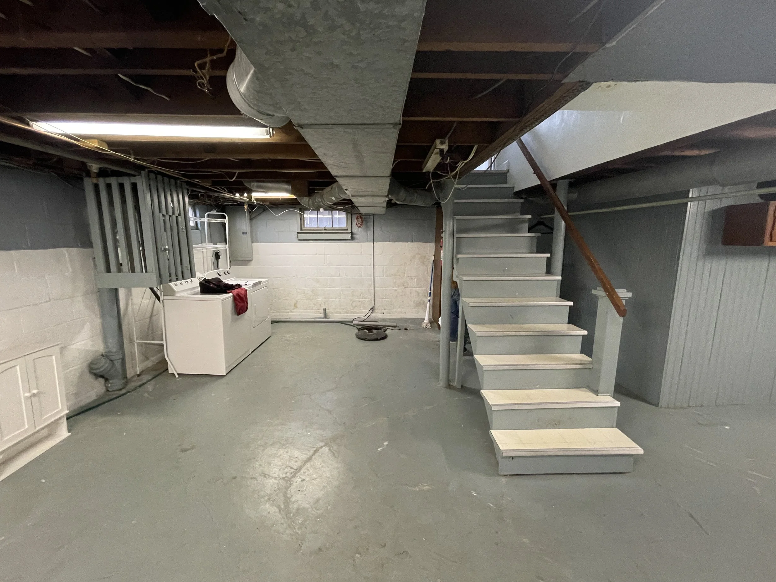 Immediately off of the kitchen is the basement entrance. A classic unfinished basement that many homeowners would prefer to keep the door shut on unless they needed to run a load of laundry, get something from storage or fix a fuse.